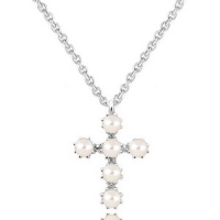 실버 엔틱 십자가 천연 담수진주 목걸이 (6월 탄생석 10%할인중)