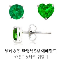 실버 천연 탄생석 귀걸이- 5월 에메랄드